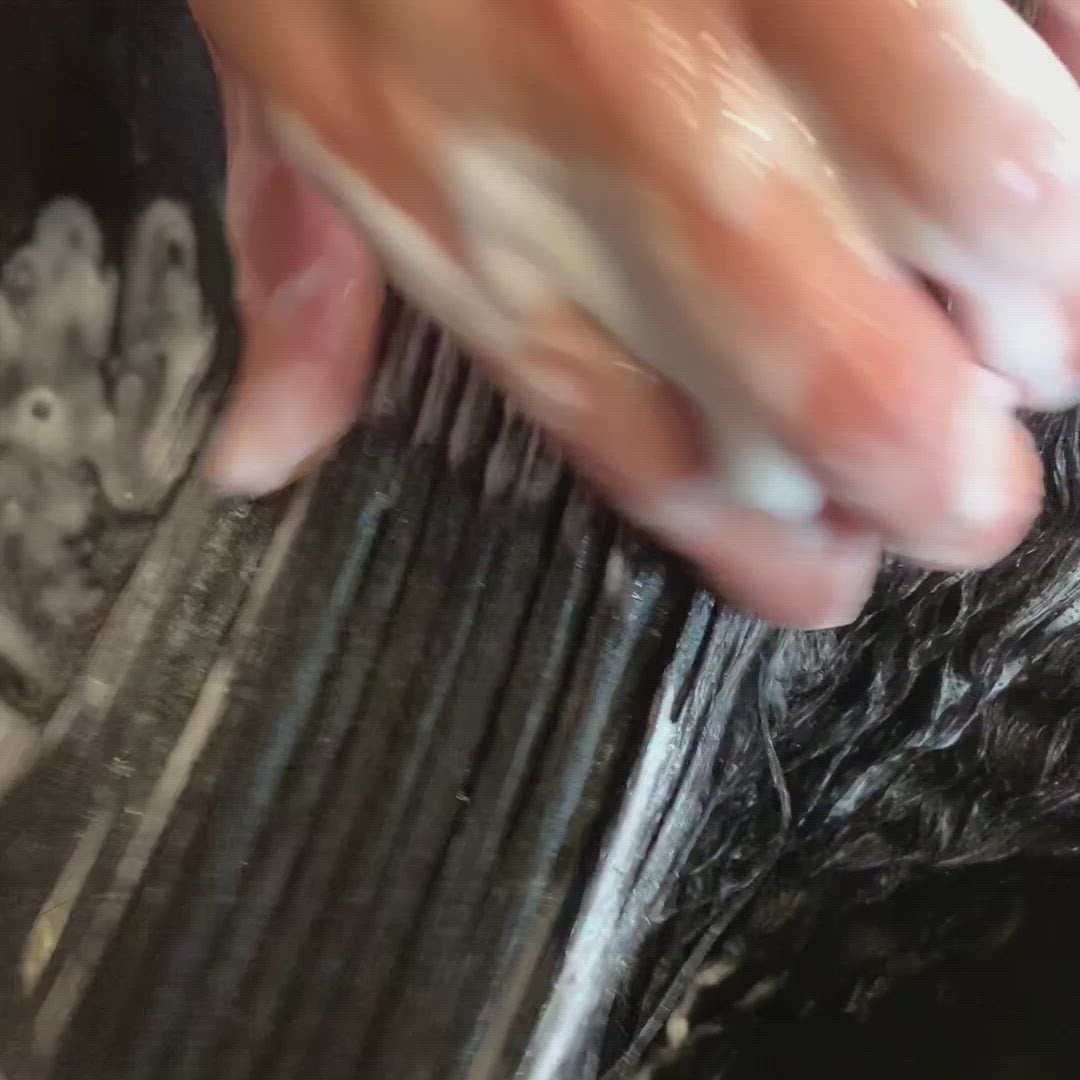 - Lather & work product into hair. Let sit for 15-30 minutes.